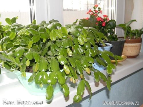 Декабрист. Муж с работы принес огромный цветок, но совсем заброшенный, старый и почти мертвый. Я верхушки посадила, и вот что получилось.