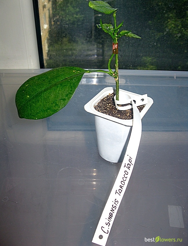 Прививка на "спичечный" сеянец апельсина 18.10.2016. На этой стадии роста прироста я начинаю переучивать его из растущего под углом расти вертикально вверх. Для этого использую разрезанный отрезок трубочки для коктейля. По мере роста и выравнивая побега трубочка опускается вниз.