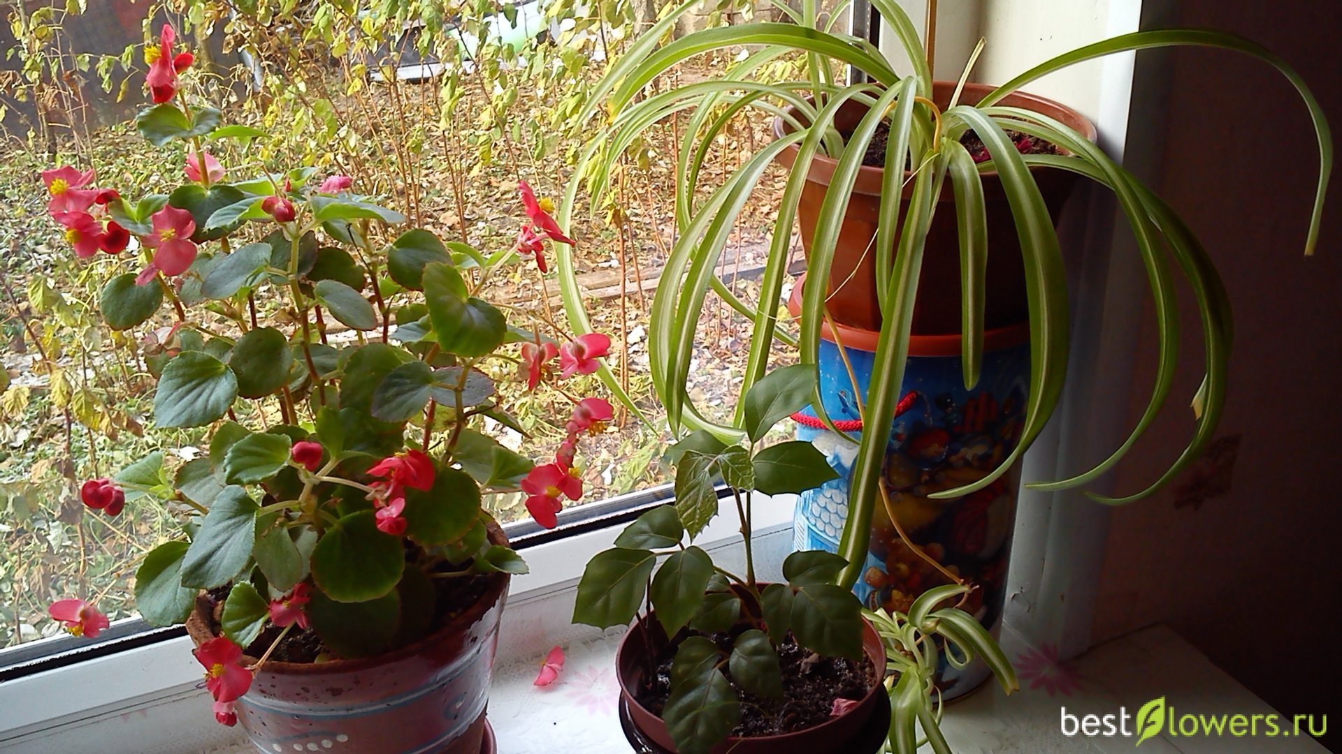бегония, хлорофитум и циссус ромболистный