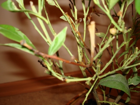 И еще не понятно почему веточки разные: есть зелененьке а есть коричневые. Может их удалить?обрезать?