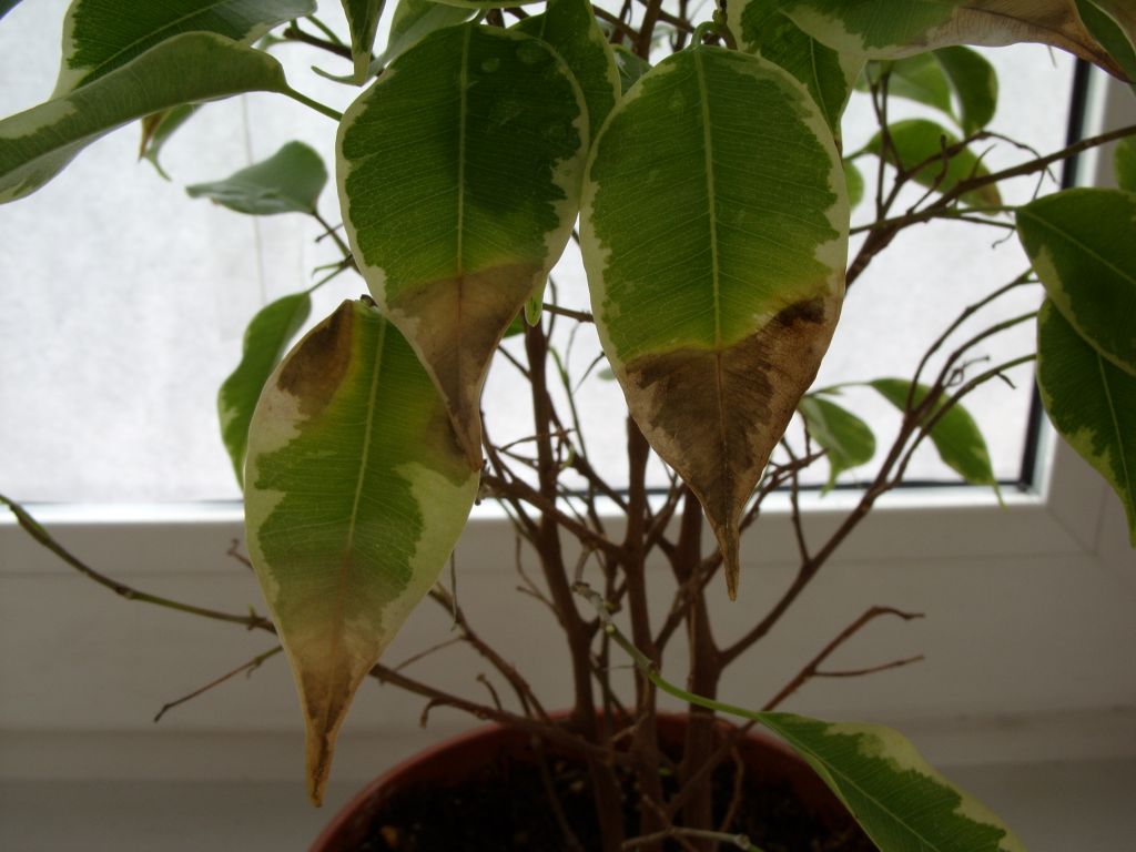 Добрый день, форумчане! прикупила фикус, думаю смогу выходить с общей помощью, продавцы сказали ему света у них мало было, так ли это?Помогите кто может, плз! у него сохнут листья с кончиков, примерно до середины, я его пересадила, и опрыскиваю 2 раза в день,может еще ему что-то не хватает?
