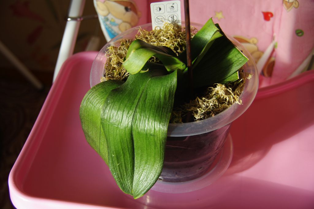 у этой тоже корней нету, цвести не собирается, листья все сморщились, дала один новый маленький корень 1 см и все замерла
