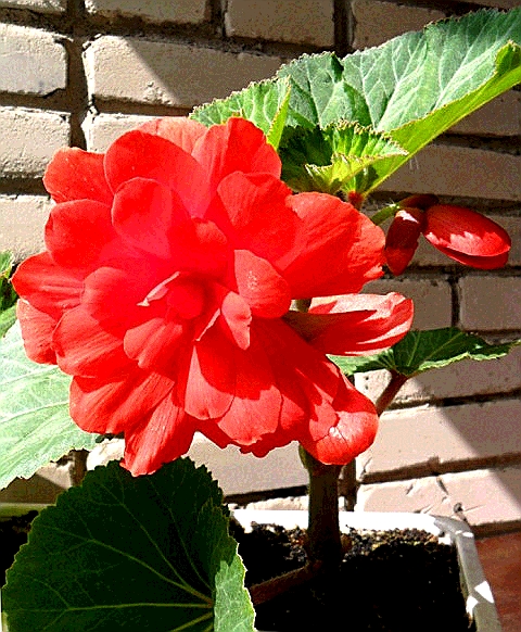 Кустовая клубневая бегония Махровая Красная (Begonia Double Red). Это крупноцветковый сорт. Махровые цветки, в соответствии с названием, имеют красно-малиновую окраску. Диаметр цветка моей бегонии – 12 см. Высота бегоний этого сорта 20–30 см. Цветет обильно и непрерывно в течение всего сезона до заморозков.