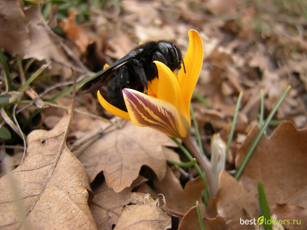 Пчела-плотник на крокусе Сузианском. Крым, Мисхор.