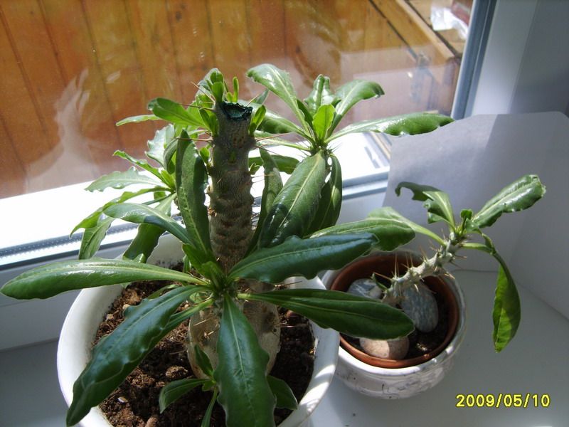 Пахиподиум Сандерса после обрезки макушки, в маленьком горшке - макушка