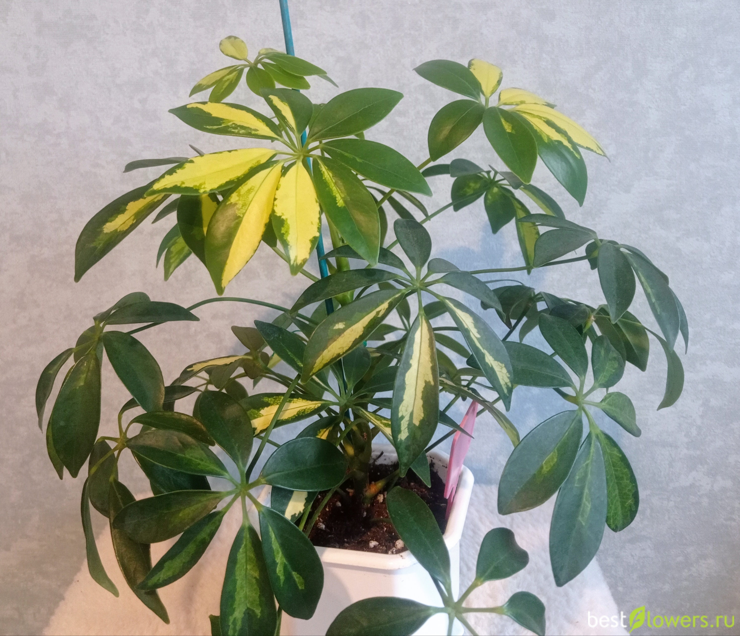 Молодая шеффлера, к весне принарядилась особенно пёстрыми листиками :)