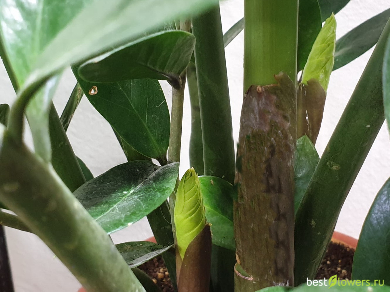 Замиокулькас замиелистный - молодые листья